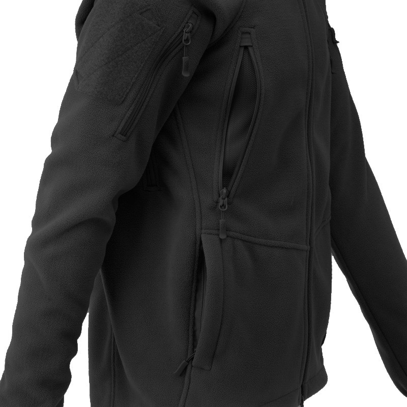 Bluza wykonana jest z materiału Hybrid Fleece (340 g/m²), który łączy klasyczny polar z technologią grid fleece. Dzięki strukturze w drobną kratkę jest lżejsza, bardziej oddychająca i szybciej odprowadza wilgoć, zachowując świetne właściwości termiczne. Dodatkowe wywietrzniki pod pachami, zapinane na zamek, umożliwiają precyzyjną regulację temperatury.