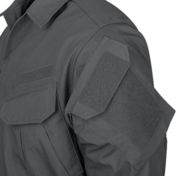 Dzięki skośnym kieszeniom na piersiach i ramionach, użytkownik ma łatwy dostęp do niezbędnego wyposażenia, a klasyczny kołnierz i ukryta listwa guzikowa zwiększają komfort noszenia. Wzmocnione łokcie z miejscem na ochraniacze zapewniają dodatkową ochronę podczas dynamicznych działań.