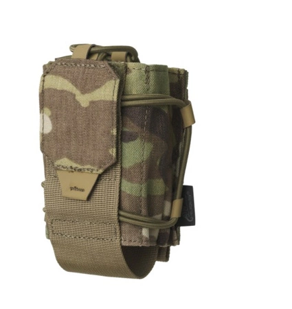 Kieszeń do przechowywania radiostacji Sprzęt do łączności jest ważnym elementem wyposażenia służb mundurowych. Dlatego warto go mieć zawsze pod ręką. Wygodne oraz pewne przenoszenie radiostacji zapewni kieszeń Radio Pouch. Dzięki regulacji wysokości oraz elastycznemu ściągaczowi w obwodzie możliwe jest dopasowanie kieszeni do różnych modeli i wielkości radiostacji. Radio przed wypadnięciem zabezpieczone jest za pomocą shock cordu zapewniającego jednocześnie swobodny dostęp do wszelkich manipulatorów na górze radiostacji. Kieszeń mocowana jest do wyposażenia za pomocą systemu kompatybilnego z MOLLE/PALS. Cechy: Regulacja na wysokości oraz szerokości Zabezpieczenie radiostacji za pomocą shock cordu