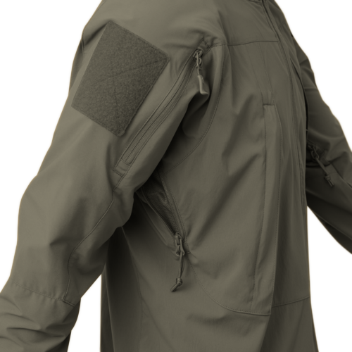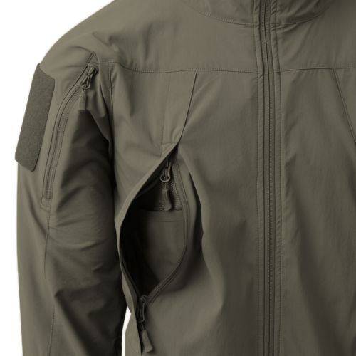 Chowany w kołnierzu regulowany kaptur z wyprofilowanym daszkiem chroni przed wiatrem i deszczem, a kiedy nie jest potrzebny – pozostaje dyskretnie ukryty. Brak dodatkowych kieszeni na wysokości nerek i przedramion poprawia komfort noszenia i nie przeszkadza w użyciu plecaka lub pasa taktycznego.