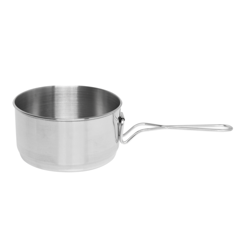 Menażka została wykonana z grubej stali, która doskonale znosi wysokie temperatury. Można w niej bezpiecznie gotować bezpośrednio na ognisku lub kuchence turystycznej, bez ryzyka odkształceń czy przypalenia naczyń. Elektropolerowana powierzchnia ułatwia czyszczenie i nadaje całości estetyczny, lekko błyszczący wygląd.