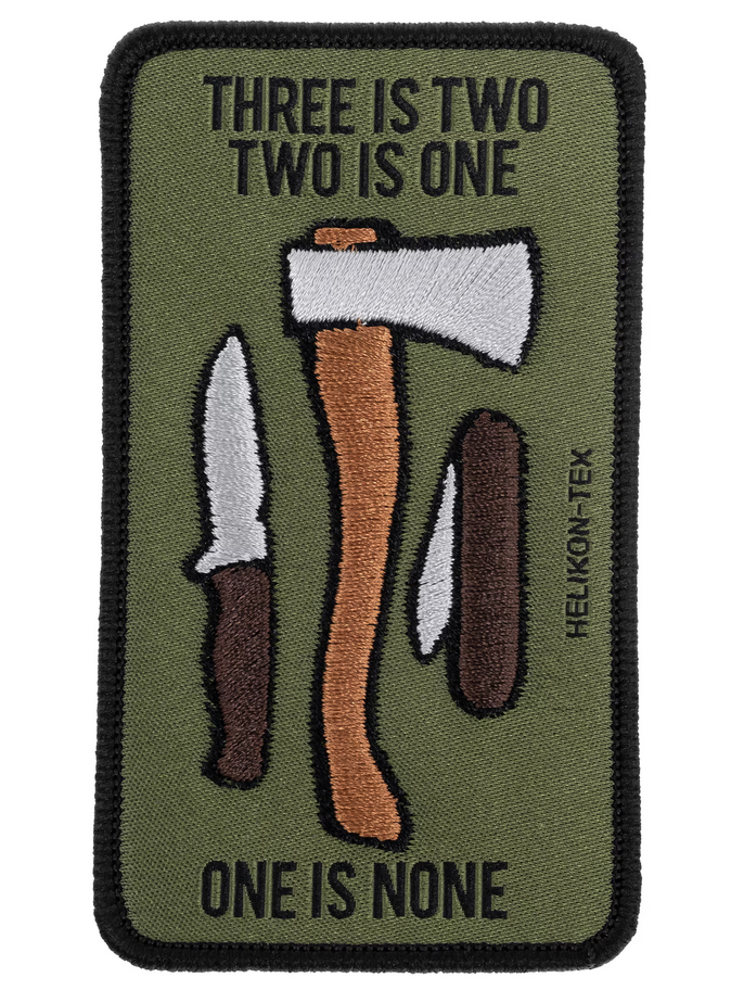 Praktyczny patch przypominający o jednej z podstawowych zasad survivalu: trzy to dwa, dwa to jeden, a jeden to nic. To prosta filozofia podkreślająca znaczenie dublowania wyposażenia, gdy warunki mogą stać się trudne i liczy się dobre przygotowanie.