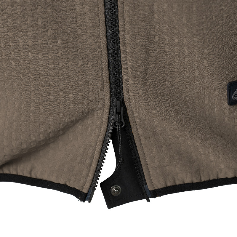 elastyczny materiał softshell z siatkową strukturą grid fleece, który odprowadza wilgoć, poprawia oddychalność i zwiększa wiatroszczelność.