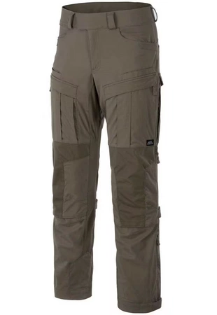 Ponadto w kluczowych miejscach (pas, krocze i tył kolan) zastosowaliśmy wstawki z rozciągliwego materiału Versastrech. Jego największą zaletą jest szybkie schnięcie i wysoka oddychalność. Dodatkowo, okolice kolan zostały wzmocnione Cordurą 500D, a w razie potrzeby są też kieszenie na wkładki ochronne. Dzięki ściągaczom pod kolanami i w dolnej części nogawki, spodnie łatwo dopasować.
