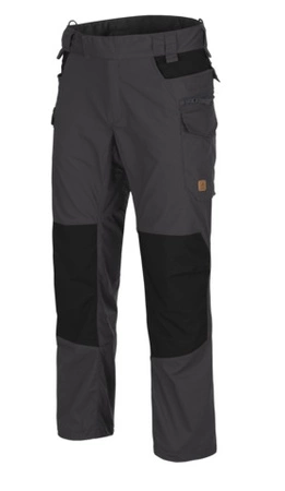 Spodnie wyposażone zostały w minimalistyczne punkty podpięcia szelek. Szerokie szlufki spodni umożliwiają przeplecenie nawet 50mm pasa, a umieszczone z przodu dodatkowe pętle pozwalają na dowiązanie dodatkowego sprzętu. Dodatkowym atutem są guziki z oznaczeniem Helikon-Tex®. Aby zapewnić większą szczelność przeciwko niewielkim opadom, materiał może zostać zaimpregnowany przy użyciu specjalnego wosku.