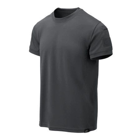 Co sprawia, że zwykły t-shirt staje się taktyczny? W przypadku tego produktu kilka elementów. Po pierwsze zastosowany materiał poliestrowy wykończony technologią Topcool - szybko schnie i odprowadza wilgoć. Po drugie umieszczone na ramionach kieszonki z wszytymi szlufkami na okulary.