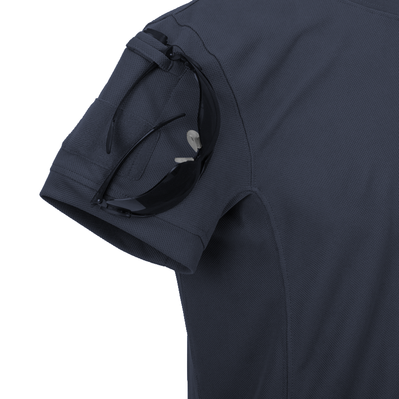 Dodatkowe kieszenie na ramionach zwiększają funkcjonalność, a wszyte szlufki umożliwiają bezpieczne przypięcie okularów. Pod kieszeniami umieszczone zostały panele velcro, pozwalające na personalizację za pomocą naszywek. Nawet logo Helikon-Tex wszyto dyskretnie na dole koszulki, by w razie potrzeby można było je łatwo usunąć.