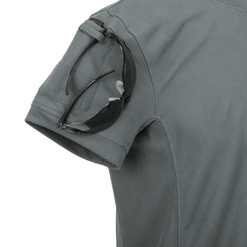 Dodatkowe kieszenie na ramionach zwiększają funkcjonalność, a wszyte szlufki umożliwiają bezpieczne przypięcie okularów. Pod kieszeniami umieszczone zostały panele velcro, pozwalające na personalizację za pomocą naszywek. Nawet logo Helikon-Tex wszyto dyskretnie na dole koszulki, by w razie potrzeby można było je łatwo usunąć.