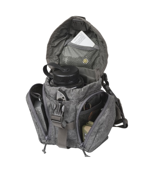 Torbę Essential Kitbag® zaprojektowaliśmy tak, by mieściła całe podstawowe wyposażenie bushcraftowe lub zestaw survivalowy. Zmieści się w niej manierka z kubkiem, składana kuchenka, latarka, kompas, linka, zestaw do szycia, itd. Na wszystko przewidzieliśmy miejsce w osobnych kieszeniach. Essential Kitbag® można nosić na pasie 50mm, przypinać do plecaka lub platform MOLLE/PALS, bądź na jego własnej taśmie naramiennej. W rękawie umieszczonym na tylnej ściance zmieści się piła/nóż/siekierka. Kieszeń można ograniczyć lub regulować za pomocą rzepa. Na frontowej ścianie istnieje możliwość dopinania dodatkowych kieszeni. Essential Kitbag® to idealna torba na jednodniową wyprawę gdy musimy zabrać ze sobą tylko podstawowe wyposażenie.