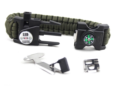 • Opaska z paracordu: Około 3,2 metra paracordu, idealnego do wykorzystania w sytuacjach awaryjnych.