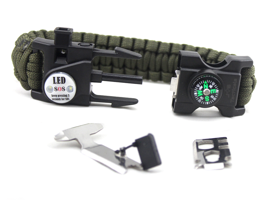 JB Tacticals Bransoletka Survivalowa Paracord SOS Zielona