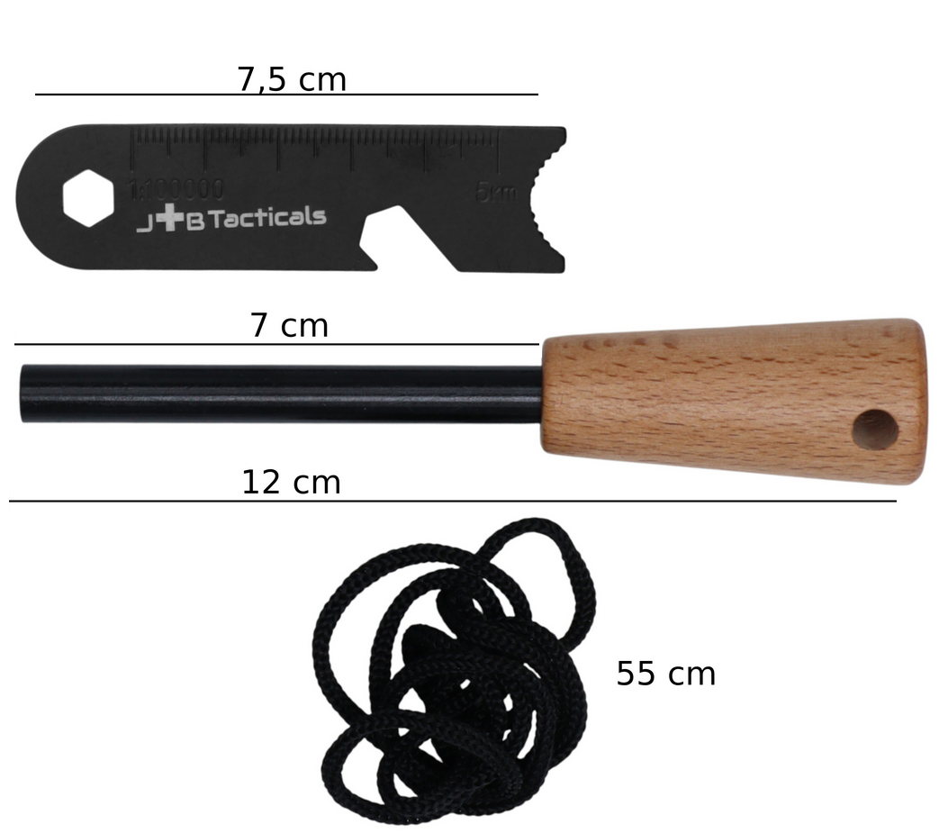 Dzięki połączeniu precyzyjnego pręta Ø8 mm, wytrzymałego drewna orzechowego i multifunkcyjnej blaszki 7w1, JB-04 dostarcza ogień i funkcjonalność dokładnie wtedy, gdy ich najbardziej potrzebujesz.