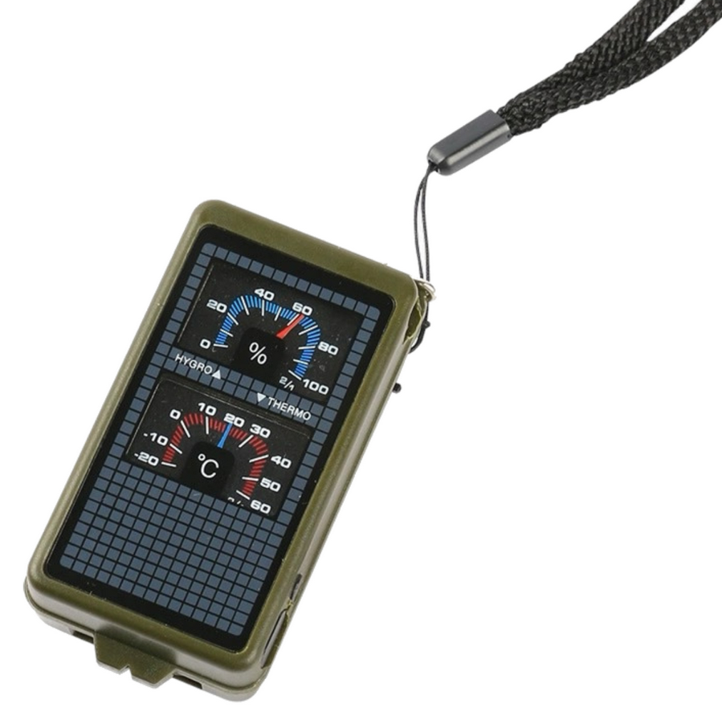 - Higrometr: Kontrola wilgotności, idealna podczas długotrwałych wypraw.