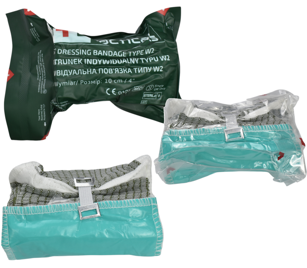 Opatrunek indywidualny typu W został zaprojektowany z myślą o szybkim i efektywnym zabezpieczeniu ran, w tym ran postrzałowych. Posiada dwa chłonne pady, z czego jedn jest ruchomy, co umożliwia obustronne zabezpieczenie rany i skuteczne tamowanie krwotoku. Dzięki tej konstrukcji opatrunek idealnie przylega do rany, zapewniając maksymalną ochronę i komfort pacjenta.