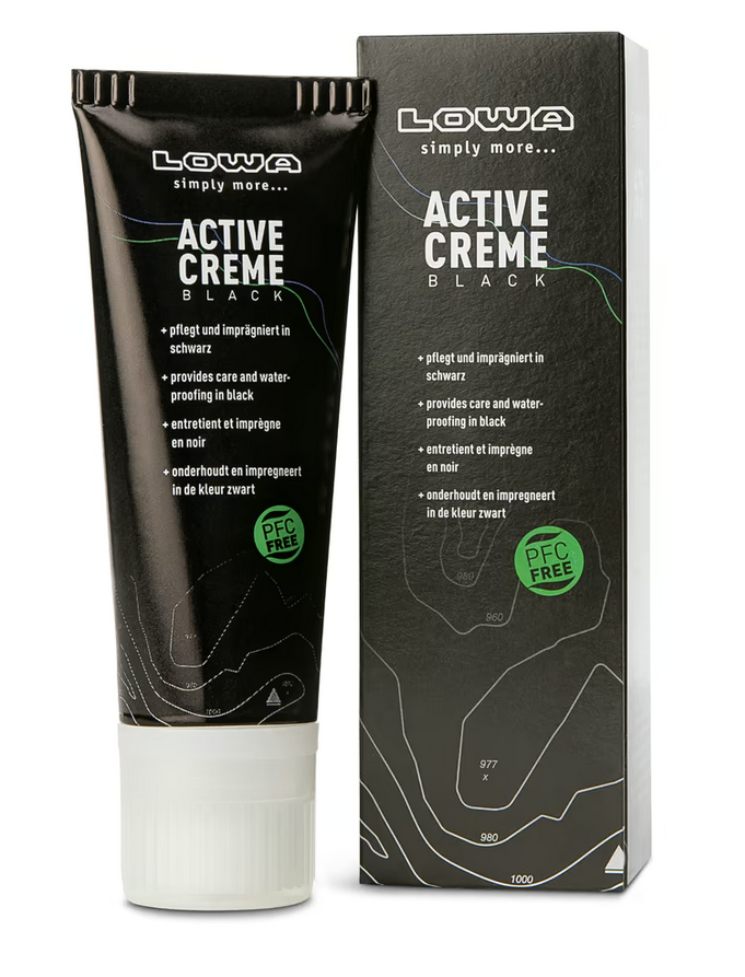 LOWA ACTIVE CREME BLACK to intensywna pasta pielęgnacyjna przeznaczona do czarnych butów ze skóry licowej, w tym modeli taktycznych i obuwia ochronnego. Oprócz ochrony i konserwacji skóry, produkt przywraca intensywny, głęboki czarny kolor. W połączeniu z LOWA WATER STOP PRO gwarantuje maksymalną ochronę i trwałość obuwia. Podobnie jak wersja neutralna, nie zawiera PFC.