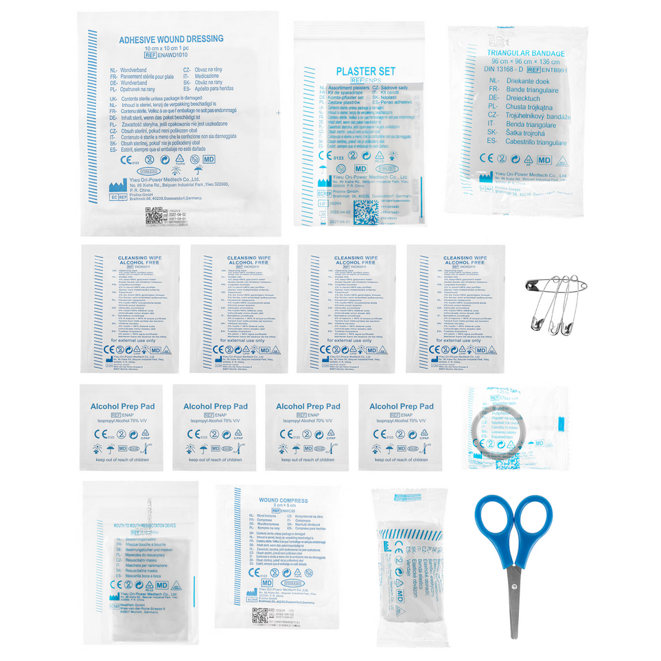 - Zawiera niezbędne akcesoria do udzielenia pierwszej pomocy