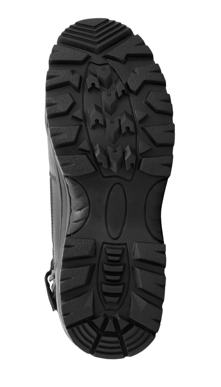 Podeszwa z wytrzymałej gumy węglowej jest klejona i szyta, cechuje się wysoką przyczepnością oraz właściwościami antypoślizgowymi, co pozwala na bezpieczne poruszanie się w zróżnicowanym terenie. Agresywny bieżnik dodatkowo poprawia stabilność.