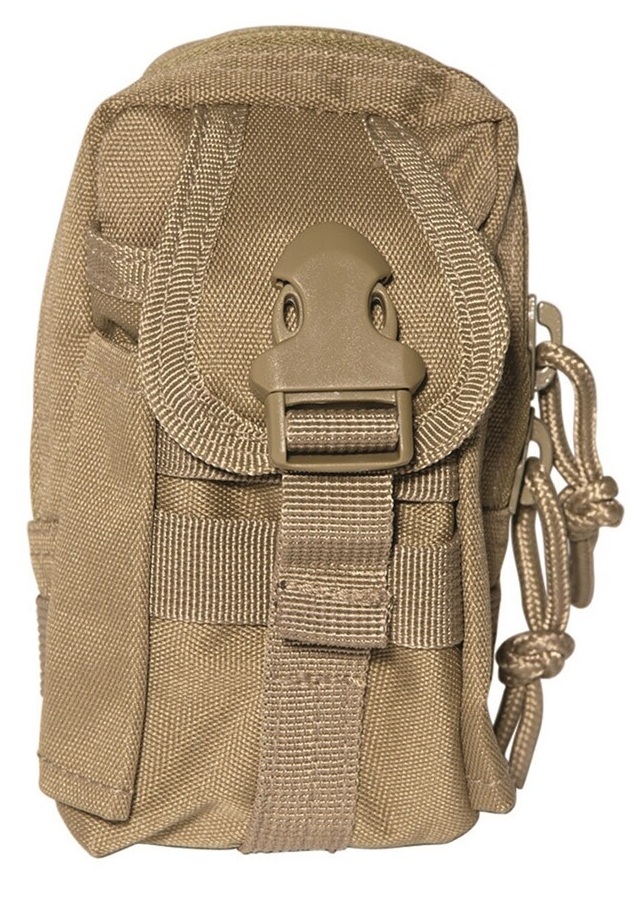 Do zamykania kieszeni frontowej służy klapa z klamrą typu fastex. Na przedniej kieszeni oraz po bokach zasobnika umieszczono dodatkowe taśmy systemu MOLLE.