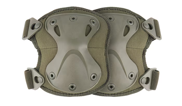 Ochraniacze wykonane z trwałych materiałów syntetycznych, zaprojektowane z myślą o ochronie stawów kolanowych podczas aktywności taktycznych, prac terenowych czy sportów outdoorowych.