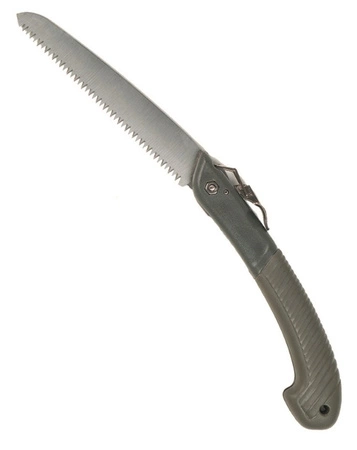 Idealna na wyprawy survivalowe, bushcraftowe, turystyczne, a także do pracy w ogrodzie lub na działce. Brzeszczot o długości 180 mm wykonany został ze stali węglowej, odpornej na pęknięcia i wykruszenia. W pozycji otwartej ostrze blokowane jest za pomocą solidnej stalowej klamry, co zwiększa bezpieczeństwo użytkowania.
