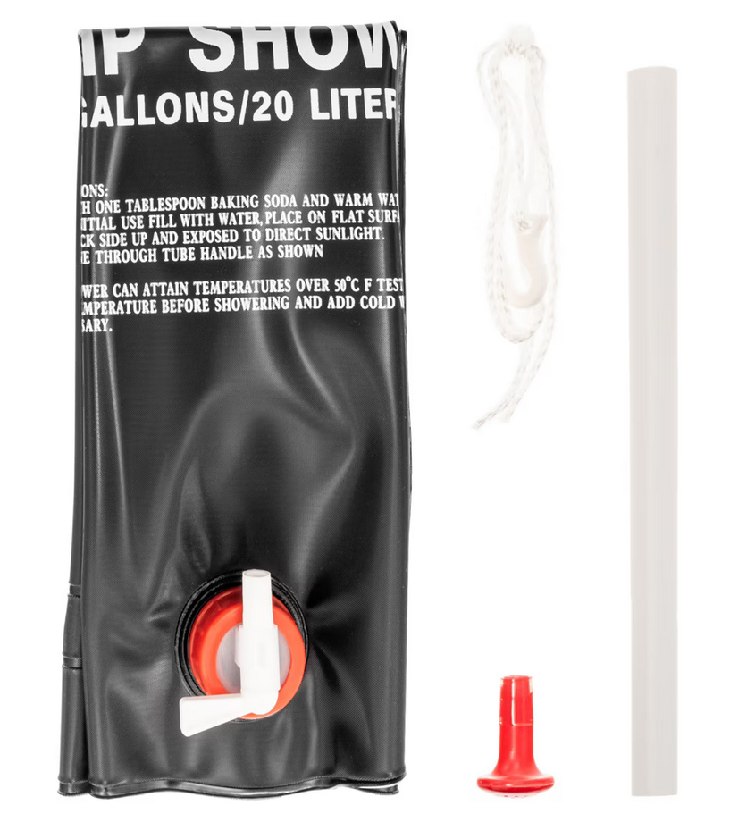 Praktyczny prysznic turystyczny o pojemności 20 litrów, idealny na camping, wyprawy survivalowe oraz wszędzie tam, gdzie brak dostępu do bieżącej wody lub łazienki.