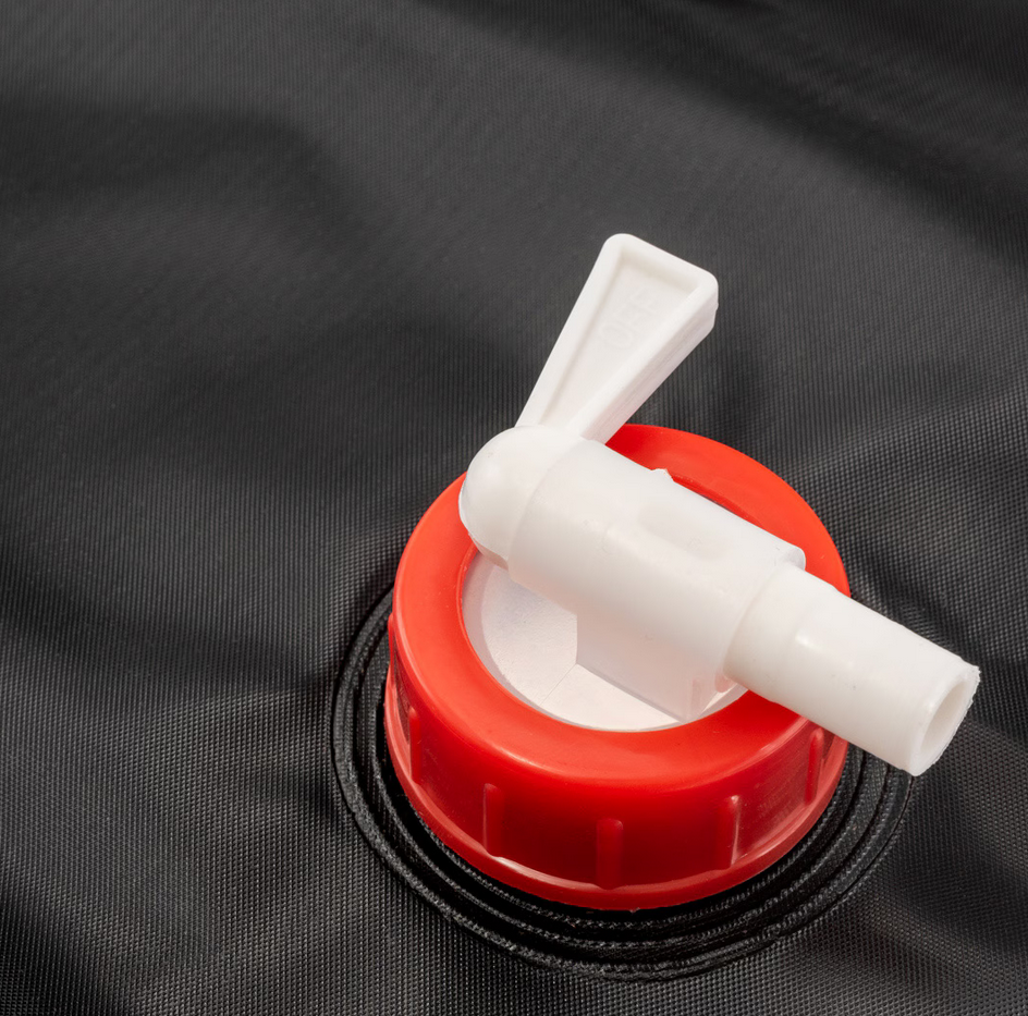 Prysznic wyposażono w kranik umożliwiający regulację przepływu wody oraz wąż z praktyczną słuchawką, co znacznie ułatwia korzystanie. Jedno napełnienie zbiornika wystarcza na około dwukrotne umycie całego ciała.