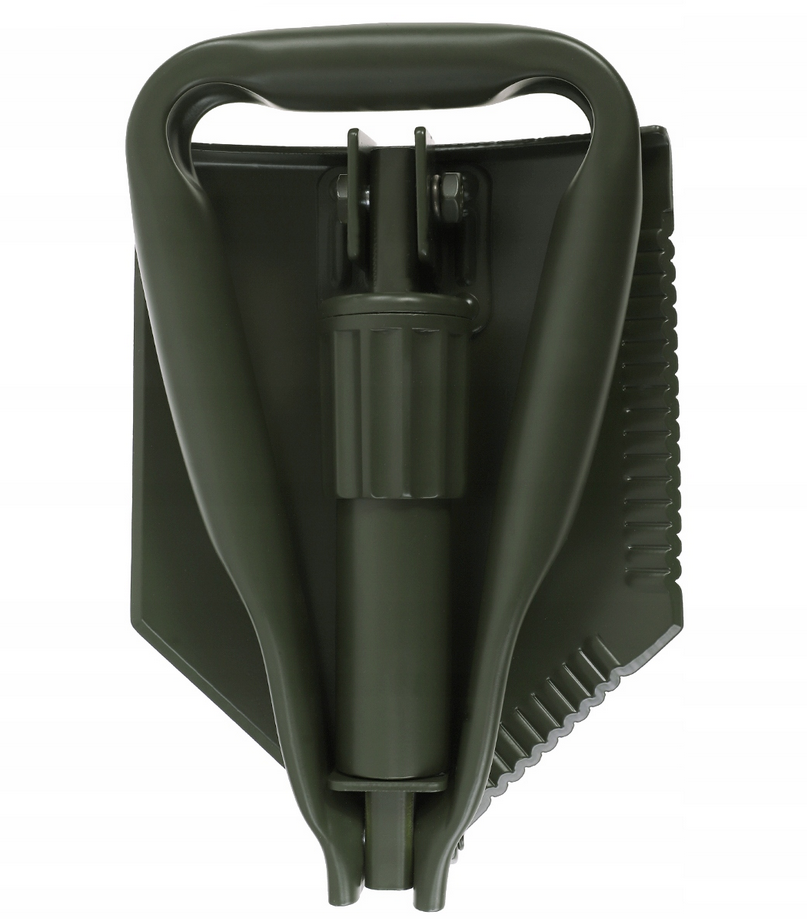 Konstrukcja saperki umożliwia złożenie narzędzia do kompaktowego rozmiaru — z 60 cm do 24,5 cm, co ułatwia transport i przechowywanie. Głownia może być również ustawiona w pozycji półotwartej, dzięki czemu narzędzie może pełnić funkcję motyki.