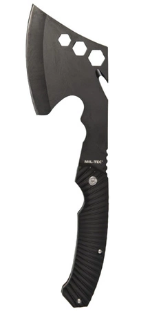 Całość wykonana z odpornej na warunki atmosferyczne stali nierdzewnej 3CR13, pokrytej czarną powłoką ochronną. Ergonomiczne okładziny rękojeści z tworzywa ABS zapewniają stabilny i pewny uchwyt, nawet w trudnych warunkach.