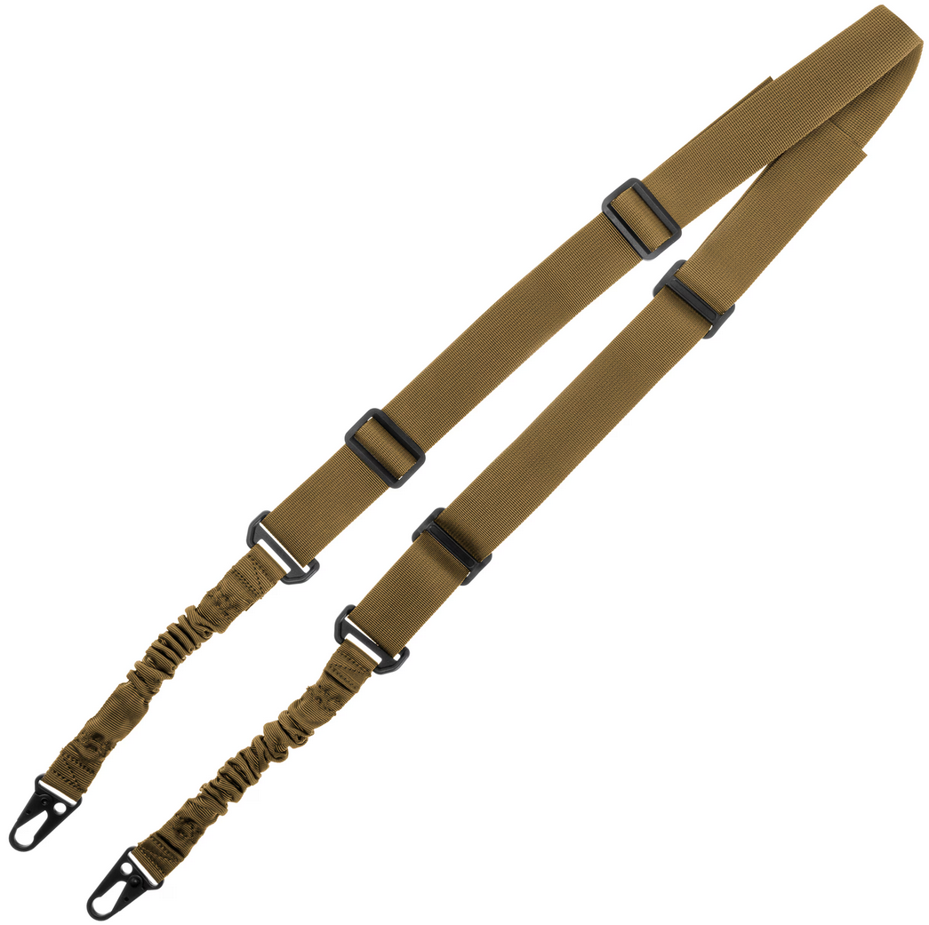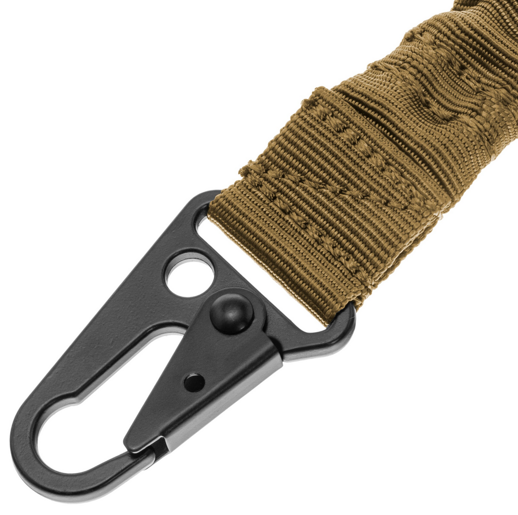 2-punktowe zawieszenie taktyczne typu bungee wykonane z wytrzymałego poliestru. Charakteryzuje się ono wysoką odpornością na przetarcia oraz niepodatnością na działanie trudnych warunków atmosferycznych, co sprawia, że jest idealnym rozwiązaniem do użytku w terenie.
