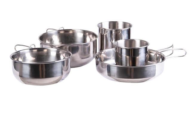 Stal nierdzewna Garnek: 12,5 x 5,5 cm Garnek: 13,7 x 6 cm Garnek: 15,1 x 4 cm Kubek: 230 ml Kubek: 380 ml Waga: 495 g