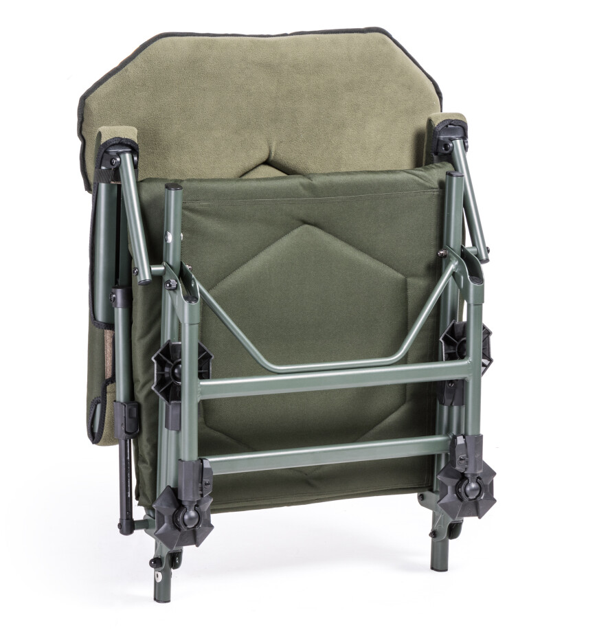 Kąt nachylenia oparcia reguluje się za pomocą przycisków umieszczonych na bocznych wspornikach. Podłokietniki standardowo wyposażone są w miękkie pokrowce z wysokiej jakości polaru.