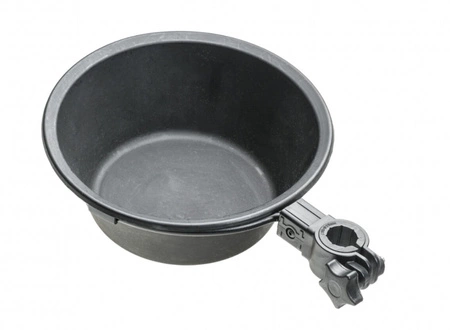 Praktyczny uchwyt umożliwiający przymocowanie miski z wodą do siedziska lub fotela, pasujący do nogi/adaptera o średnicy 25 lub 36 mm.