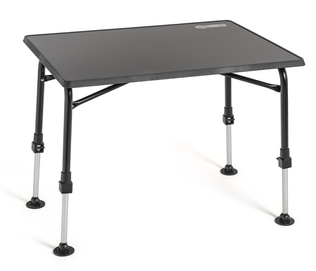 Duży i wyjątkowo stabilny stół z czterema teleskopowymi nogami wyposażonymi w regulowane stopki błotne.