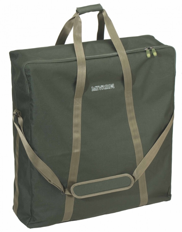 Trwała i wodoodporna torba transportowa wykonana z materiału B-POL600D, wyposażona w wyściełany pas na ramię dla komfortu podczas transportu. Dostępna w czterech wersjach, dopasowanych do różnych rozmiarów naszych łóżek wędkarskich.