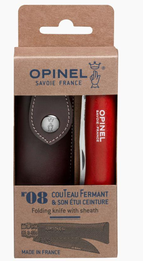 Tradycyjny składany nóż Opinel 08. Ergonomiczna rękojeść wykonana jest z lakierowanego drewna grabu. Głownia wykonana jest z nierdzewnej i modyfikowanej stali Sandvik 12C27. Jej ostrze zapewnia bardzo dobre właściwości tnące.
