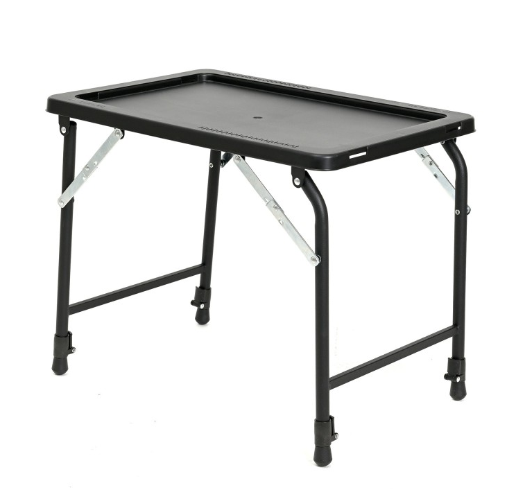 Stół jest poręczny i praktyczny, sprawdza się nie tylko na zasiadkach wędkarskich, ale również jako wyposażenie na kempingu.