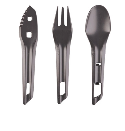 Prosty i funkcjonalny zestaw sztućców turystycznych wykonany w 70% z materiałów pochodzenia roślinnego. Łyżkę można połączyć z nożem, co pozwala na jej przedłużenie do 25 cm – idealne rozwiązanie przy głębokich naczyniach. Niezbędnik jest lekki, trwały i wygodny w przechowywaniu – wszystkie elementy można układać w stos.
