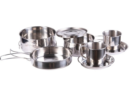Składa się z dwóch garnków, trzech talerzy, dwóch kubków i jednej patelni