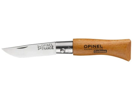 Opinel Carbon 02 to klasyczny, kompaktowy nóż składany, idealny do precyzyjnych zadań. Jego głownia o długości 3,5 cm została wykonana ze stali węglowej XC90, zawierającej około 0,90% węgla. Dzięki temu charakteryzuje się wyjątkową twardością, łatwością ostrzenia oraz doskonałymi właściwościami tnącymi.